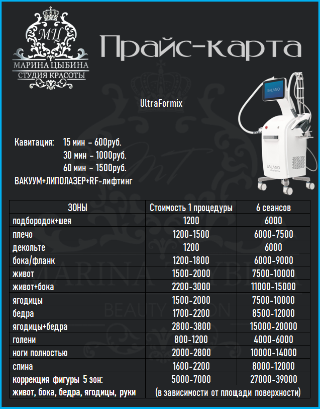 Студия красоты Марины Цыбиной дает возможность полностью расслабиться и отдаться в руки профессионала, которому доверяешь на 100% - бесценно. Мы даем нашим гостям такую возможность. Студия красоты Марины Цыбиной – это студия создающая красоту и хорошее настроение. Эта работа приносит нам удовольствие, а нашим гостям – уверенность в себе. Имея большой опыт, мы не перестаем совершенствоваться, учиться и внедрять самое новое и эффективное, чтобы вы были на самом пике моды. Мы честны и открыты с нашими клиентами. |